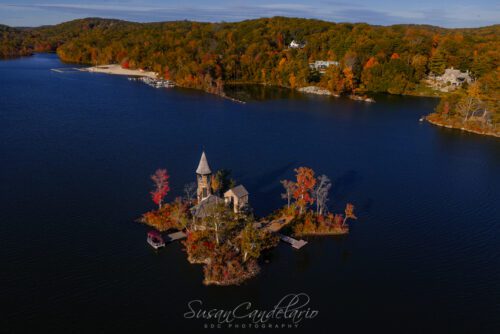 - Unparalleled Views: From sweeping wide shots that showcase the chapel’s majestic isolation within Lake Kinnelon, to intimate, angled perspectives that highlight its intricate stone architecture, and even a unique top-down view revealing the island’s captivating shape—each photograph tells a different part of the story.
