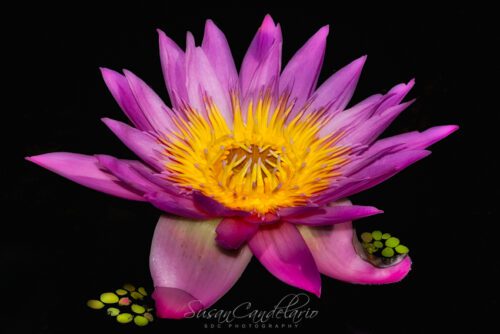There’s something truly magical about a water lily. Floating gracefully on the water’s surface, its petals unfurl to reveal a captivating display of color and intricate beauty. Today, I’m thrilled to share a photograph that I believe captures the very essence of this wonder: my “Purple and Gold Water Lily” print.