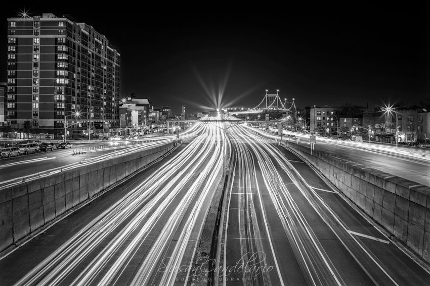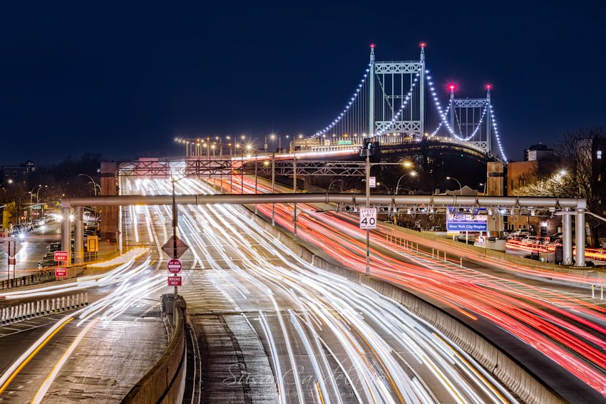 This long-exposure shot, taken in Queens, New York City, captures the vibrant energy of a typical rush hour. The flowing lines of red and white light tell a story of constant motion, of people going to and from their destinations, all against the backdrop of the city’s unique architecture.